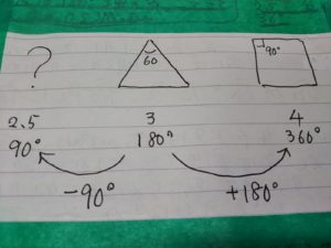 から1つの角は60度。正四角形は360度